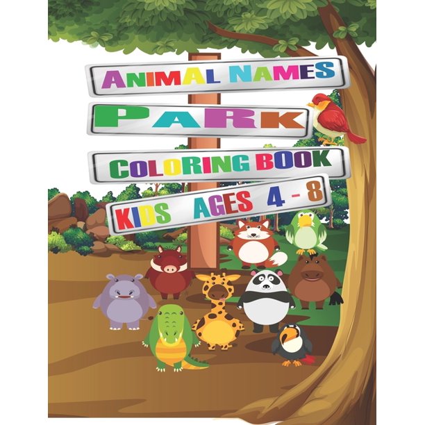 Animal Names Park Coloring Book, Kids Ages 4-8: Elegant Matt Cover 8,5 x 11 inches Size Zoo, Domestic and Wild Animals Coloring Book with 44 Coloring ...