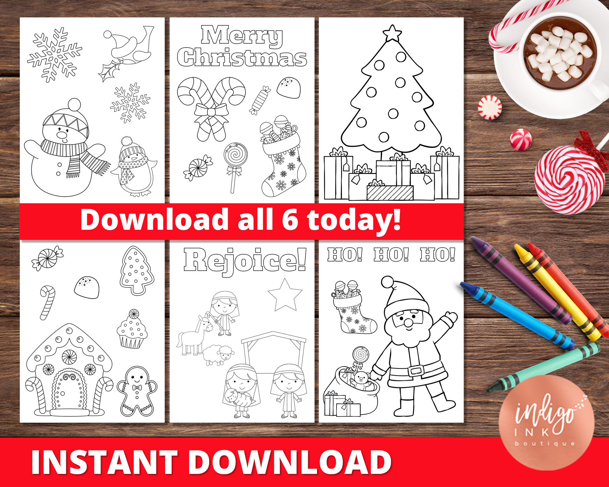 Christmas Coloring Pages INSTANT DOWNLOAD | Kids Coloring Sheets | Holiday Coloring Printables for Kids