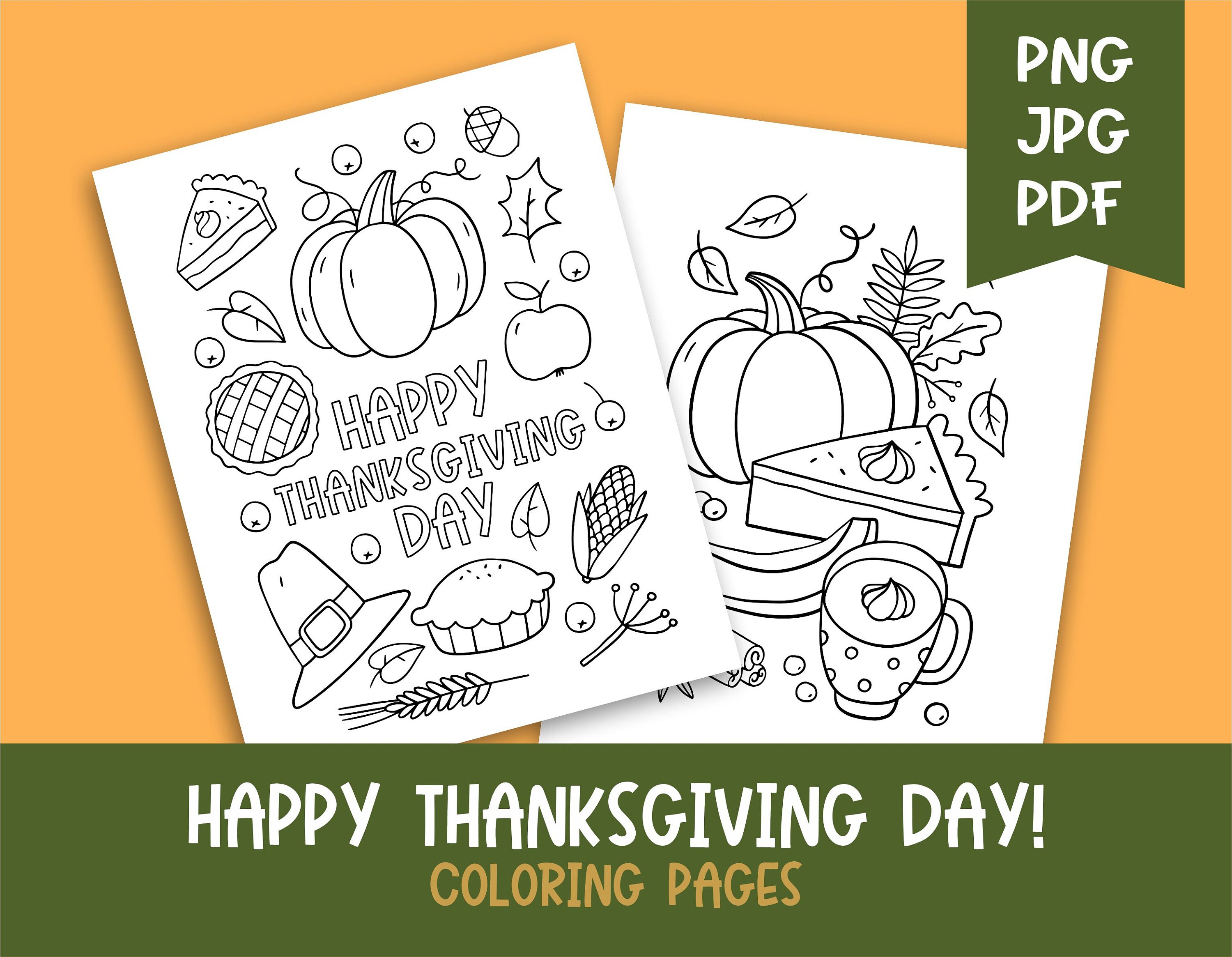 Printable Thanksgiving Coloring Pages Free, printable coloring pages provide hours of fun for kids! Coloring pages can also help children develop many important skills. These skills, eye-hand coordination, color concepts and picture comprehension, form the foundation for early learning success. Children who color generally acquire... Printable Thanksgiving Coloring Pages Thanksgiving coloring pages. Turkey, Pilgrim and more! Thanksgiving coloring sheets and coloring pictures too. PDF JPEG Adult Printable Coloring Page. Autumn Thanksgiving | Etsy Digital coloring book. The coloring pages on my site are for your enjoyment only. Children's Books. Autumn Thanksgiving colouring. Pumpkins, hydrangea, dahlia fall flowers. Digital coloring book.