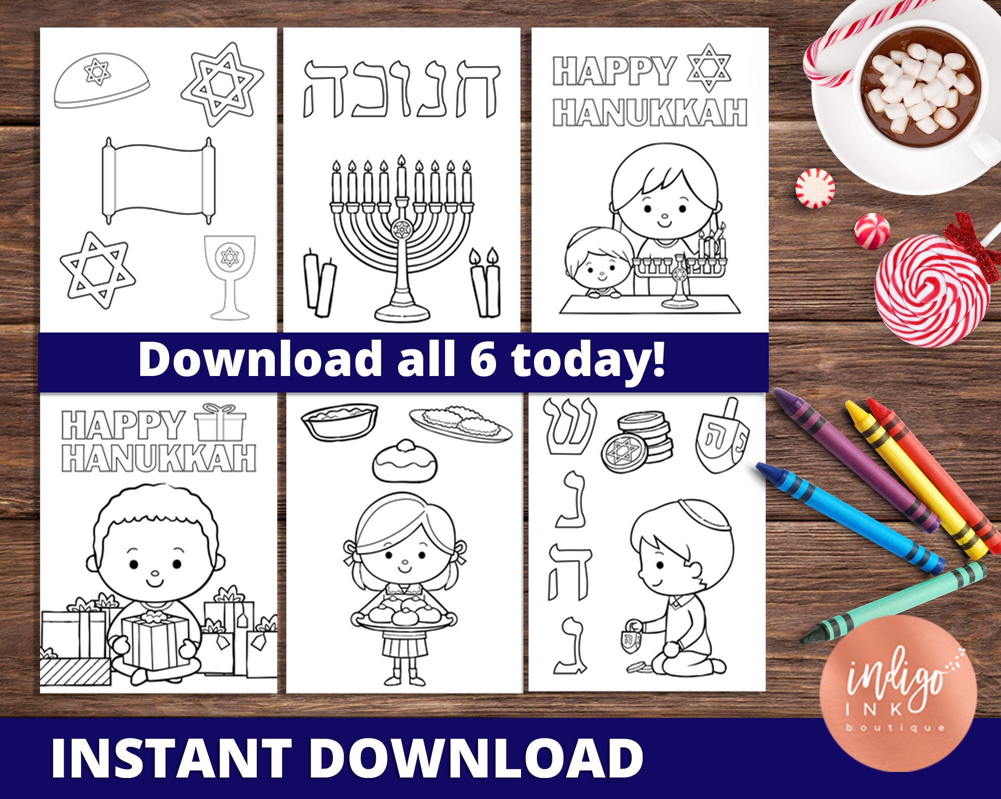 Hanukkah Coloring Pages INSTANT DOWNLOAD | Chanukah Coloring Sheets | Printables for Kids | Kids Coloring Printable Hannukah Activity